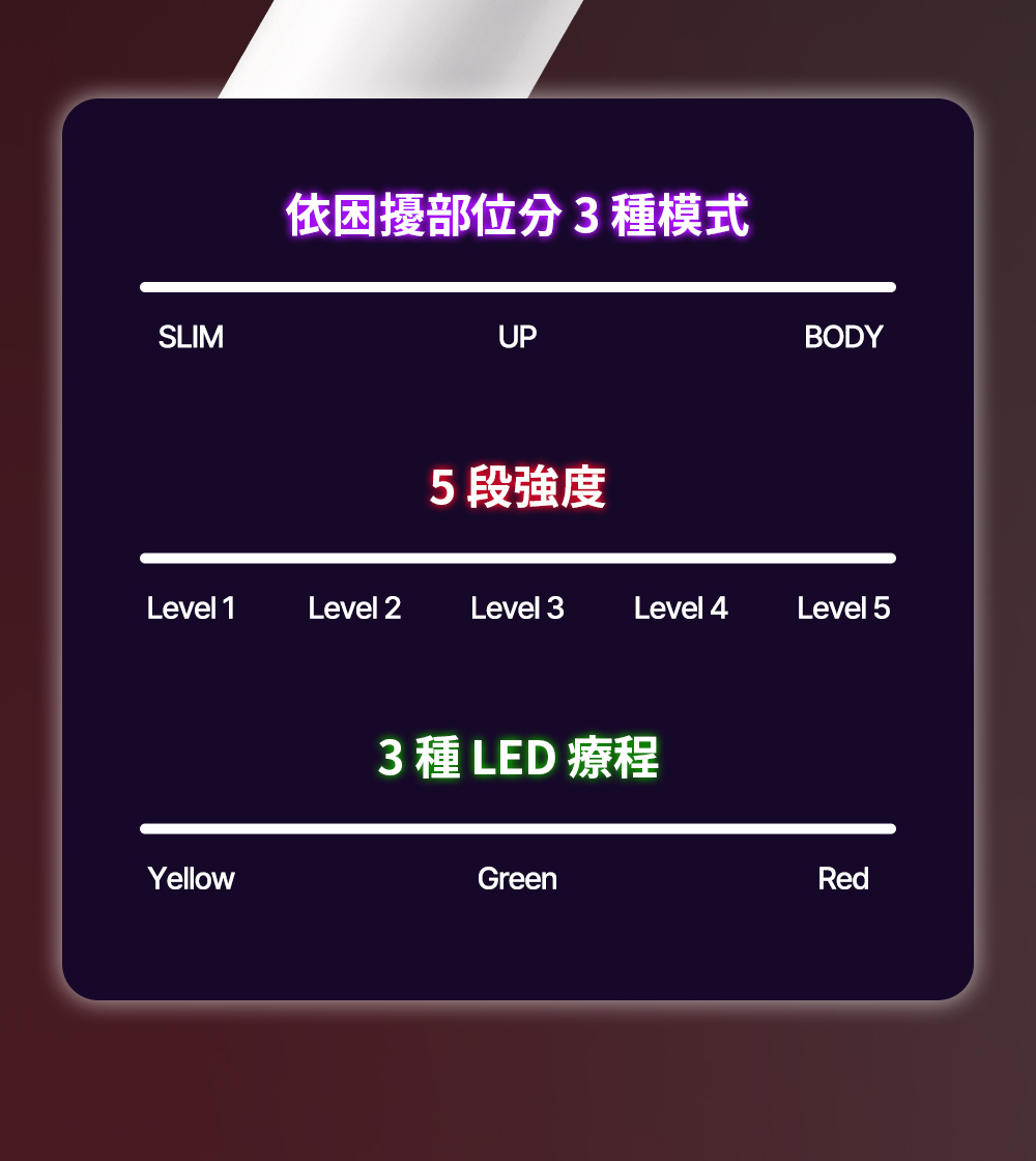 ✓ 三種模式 五段強度 一次滿足